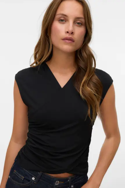 Αμάνικη μπλούζα με παγιέτα. Έχει κανονικό μήκος και κανονική γραμμή. Το ύφασμα της είναι πολύ μαλακό. Ιδανική επιλογή για να απογειώσεις τα βραδινά σου look.