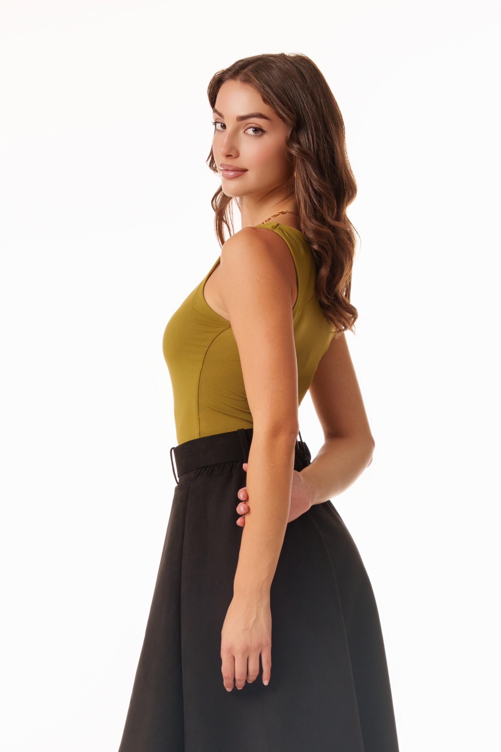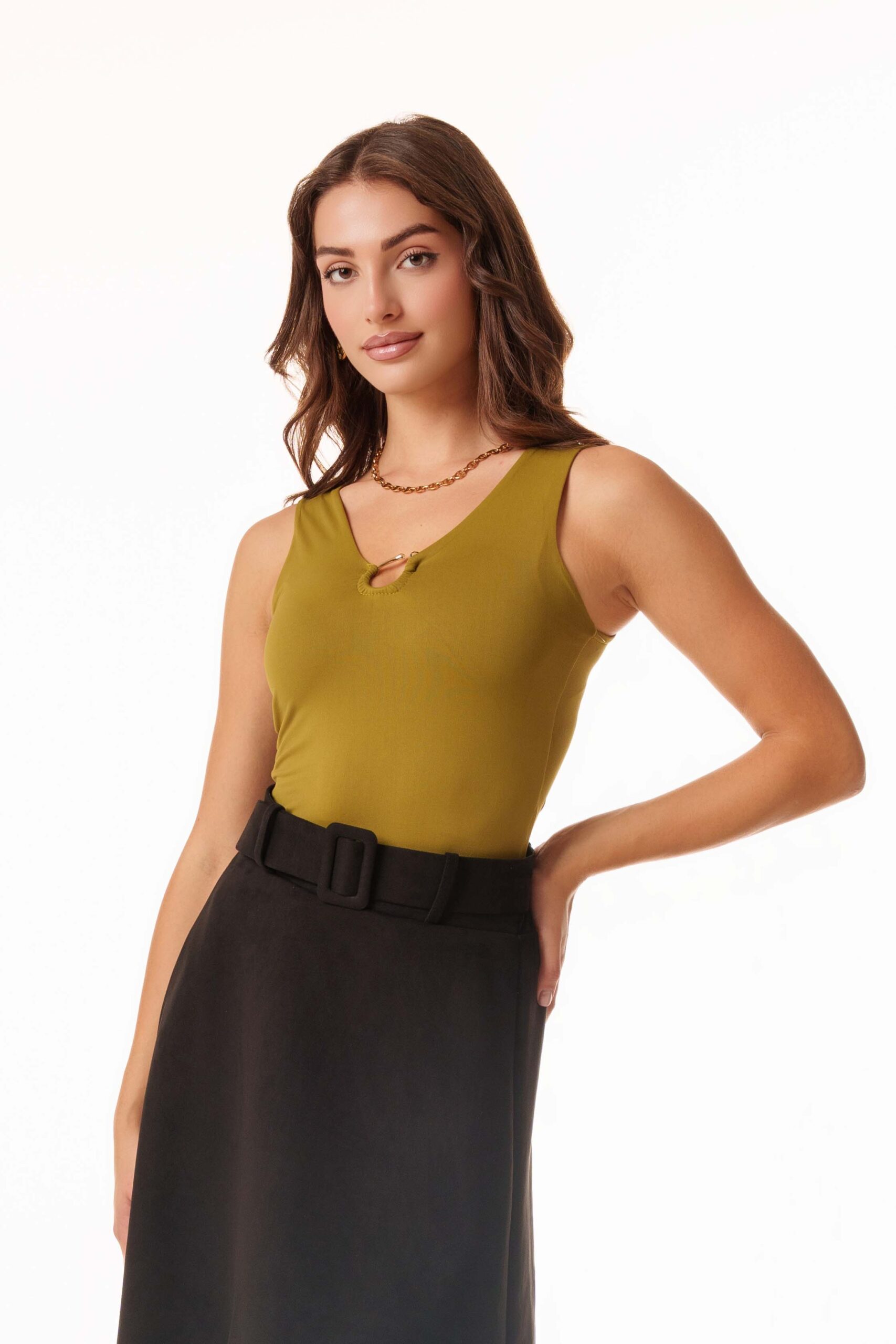 Αμάνικο κορμάκι με κρίκο. Έχει κανονικό μήκος και κανονική γραμμή. Διαθέτει ελαστικότητα και κλείσιμο με σούστες στο κάτω μέρος. Η απόλυτη επιλογή για όλες σου τις εμφανίσεις.