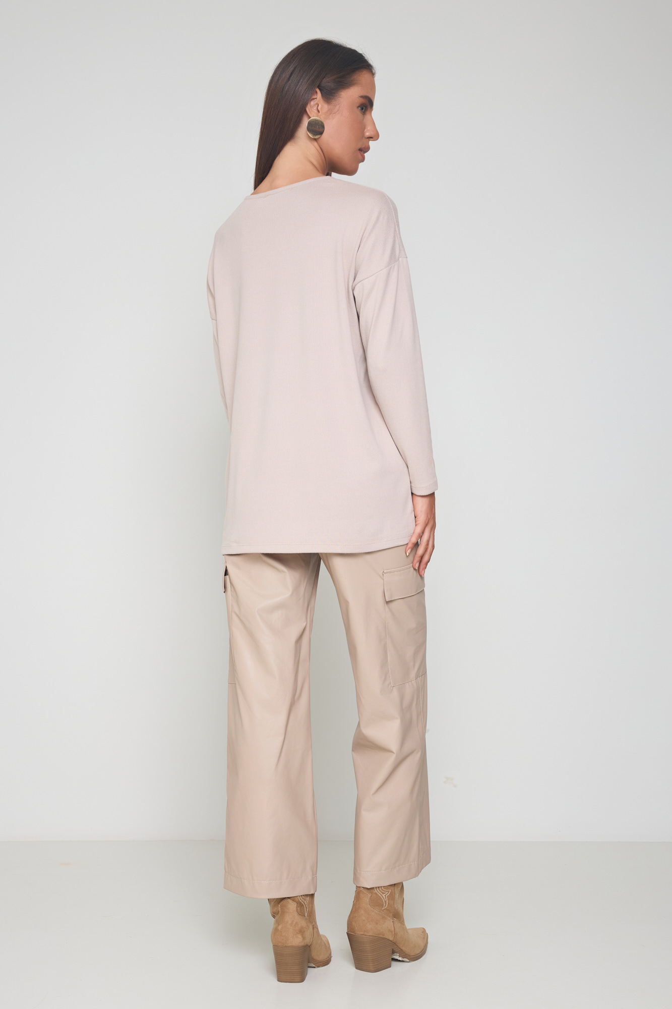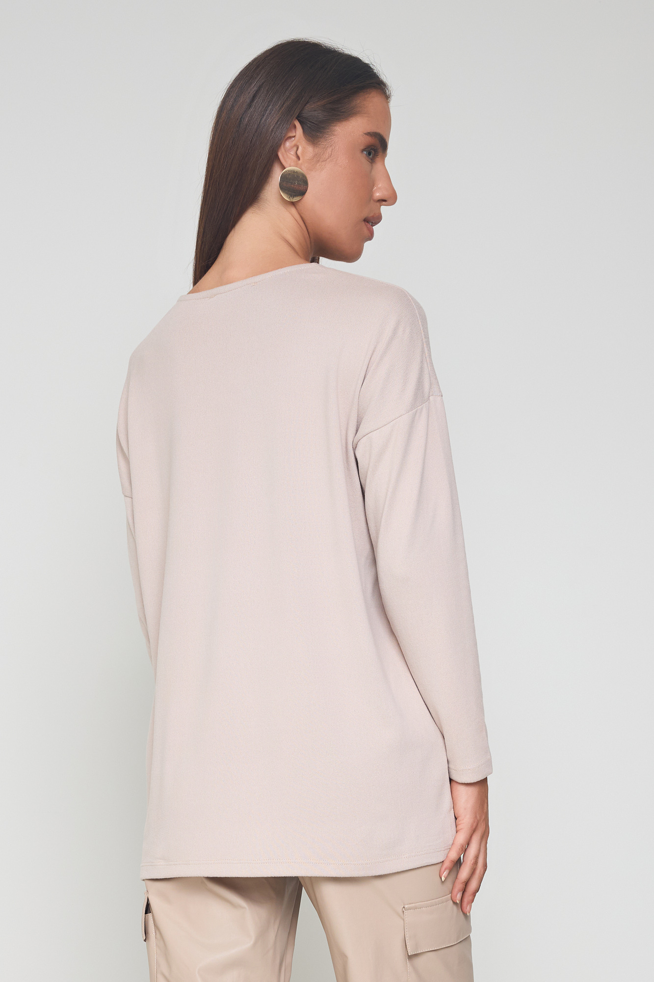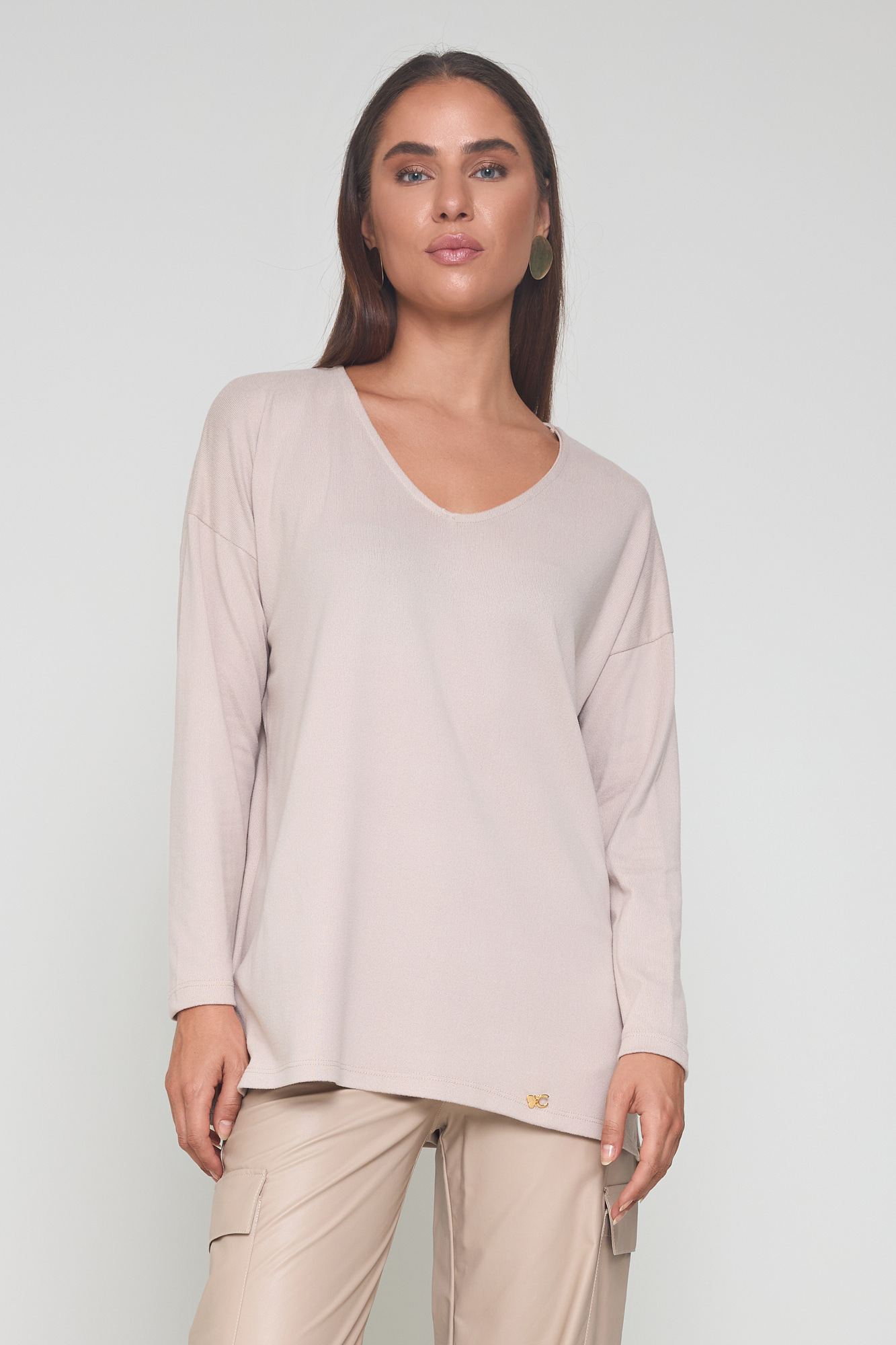 Μπλούζα με V oversized πλεχτή. Έχει κανονικό μήκος και άνετη γραμμή. Το ύφασμά του είναι πολύ μαλακό. Άνεση και στυλ σε κάθε σου εμφάνιση.