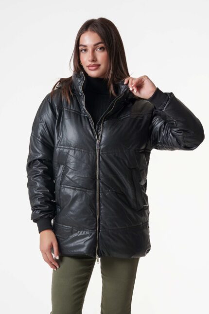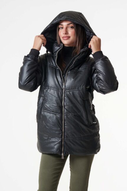 Μπουφάν διπλής όψης. Έχει κανονική γραμμή και κανονικό μήκος. Έχει γούνα από μέσα και φοριέται και απο τις δύο μεριές. Διαθέτει τσέπες στα πλαινά και απο τις δύο μεριές και αποσπώμενη κουκούλα. Δύο σε ένα επιλογή για όλα σου τα outfits.