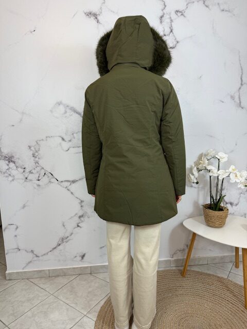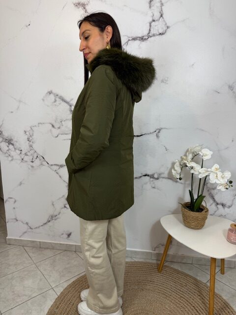 Μπουφάν διπλής όψης. Έχει κανονική γραμμή και κανονικό μήκος. Κλείνει με φερμουάρ, διαθέτει τσέπες στα πλαϊνά και έχει αποσπώμενη κουκούλα. Το ύφασμά του είναι αδιάβροχο και φοριέται και από τις δύο πλευρές. Το μπουφάν που σου χαρίζει δύο επιλογές για να καλύψεις κάθε σου ντύσιμο. Ιδανικό για όλες τις ώρες της ημέρας για να είσαι ζεστή και άνετη.
