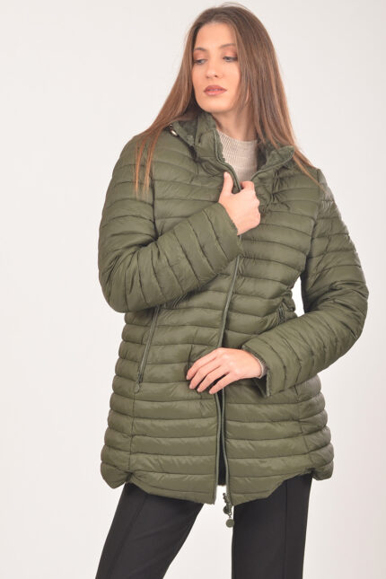 Μπουφάν διπλής όψης. Έχει κανονική γραμμή και κανονικό μήκος. Είναι αδιάβροχο και φοριέται και από τις δύο πλευρές. Διαθέτει τσέπες στα πλαϊνά και από τις δύο μεριές και αποσπώμενη κουκούλα. Δύο σε ένα επιλογή για όλα σου τα outfits. Ιδανικό για όλες τις ώρες της ημέρας για να είσαι ζεστή και άνετη.