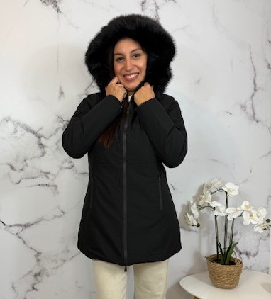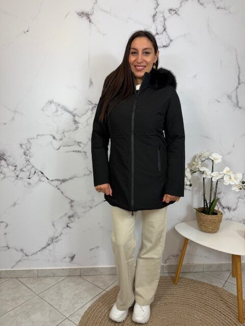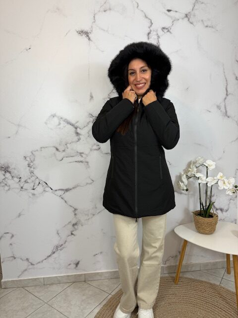 Μπουφάν διπλής όψης. Έχει κανονική γραμμή και κανονικό μήκος. Είναι αδιάβροχο και φοριέται και από τις δύο πλευρές. Διαθέτει τσέπες στα πλαϊνά και από τις δύο μεριές και αποσπώμενη κουκούλα. Δύο σε ένα επιλογή για όλα σου τα outfits. Ιδανικό για όλες τις ώρες της ημέρας για να είσαι ζεστή και άνετη.