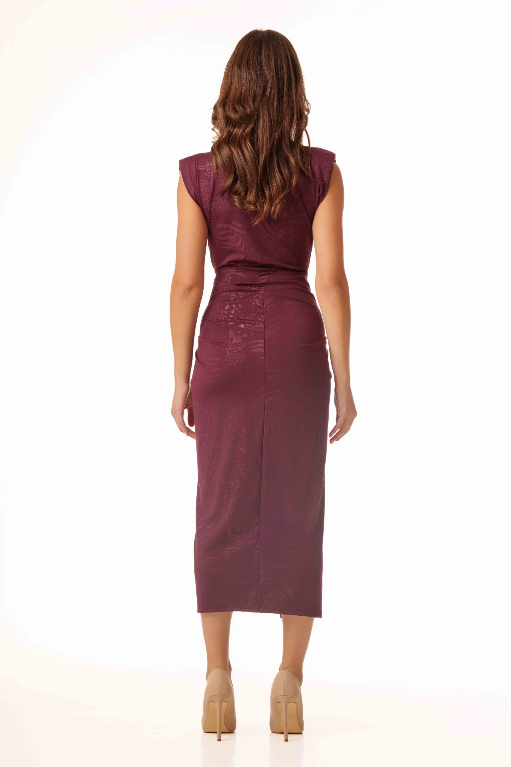 Φόρεμα με κόμπο. Έχει κανονικό μήκος και κανονική γραμμή. Διαθέτει βάτες και V λαιμόκοψη. Είναι midi με σούρες και άνοιγμα στο μπροστινό μέρος. Έχει ελαστική εφαρμογή και ανάγλυφο amimal print. Η απόλυτη τάση για να είσαι πάντα μοδάτη και στυλάτη.