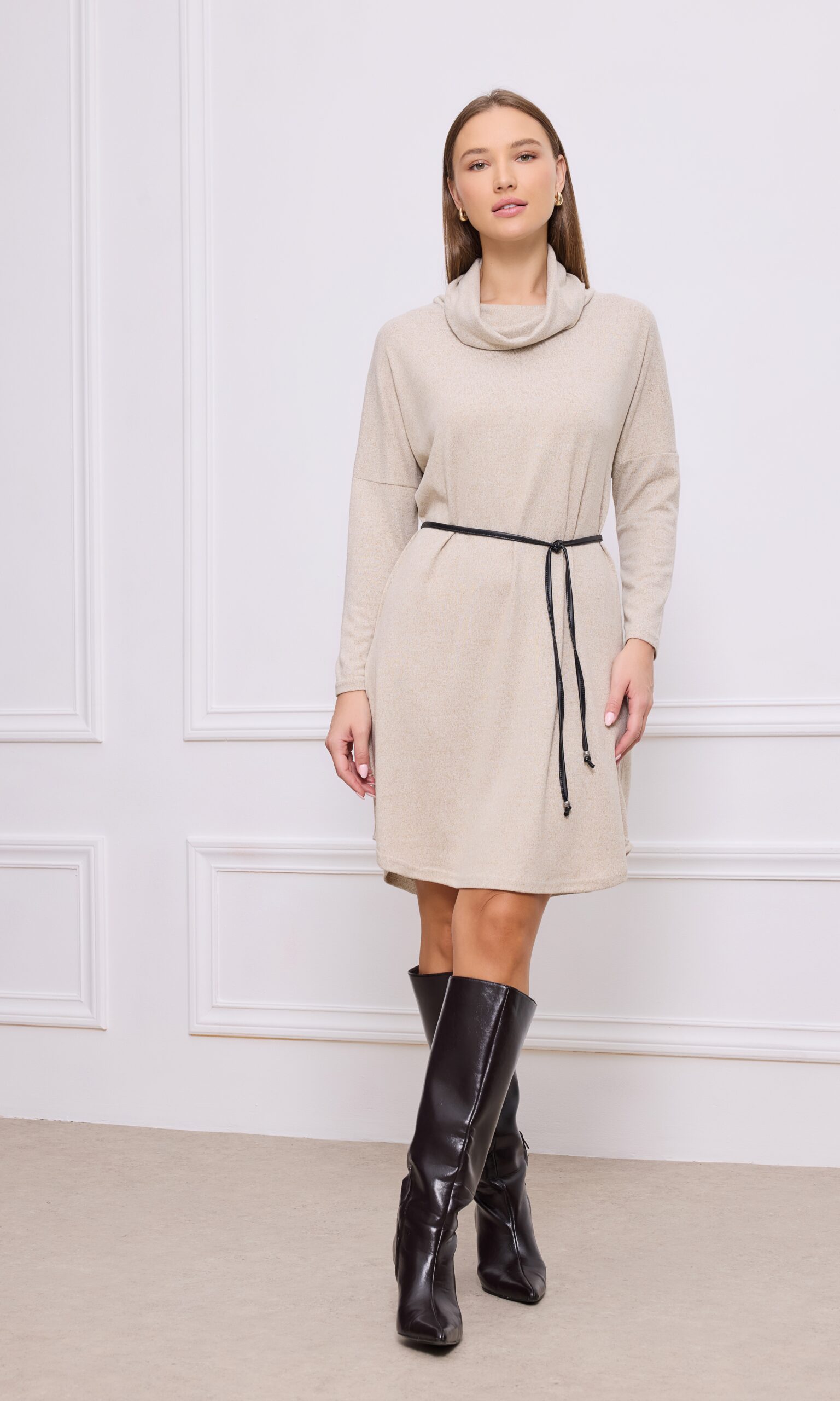 Φόρεμα πλεκτό ζιβάγκο. Έχει κανονική γραμμή και κανονικό μήκος. Διαθέτει χαλαρό ζιβάγκο στο λαιμό και το ύφασμά του είναι πολύ μαλακό και ζεστό. Πολύ άνετη επιλογή για όλα τα outfit απο το πρωί έως το βράδυ.