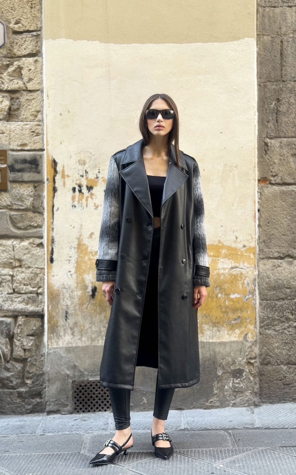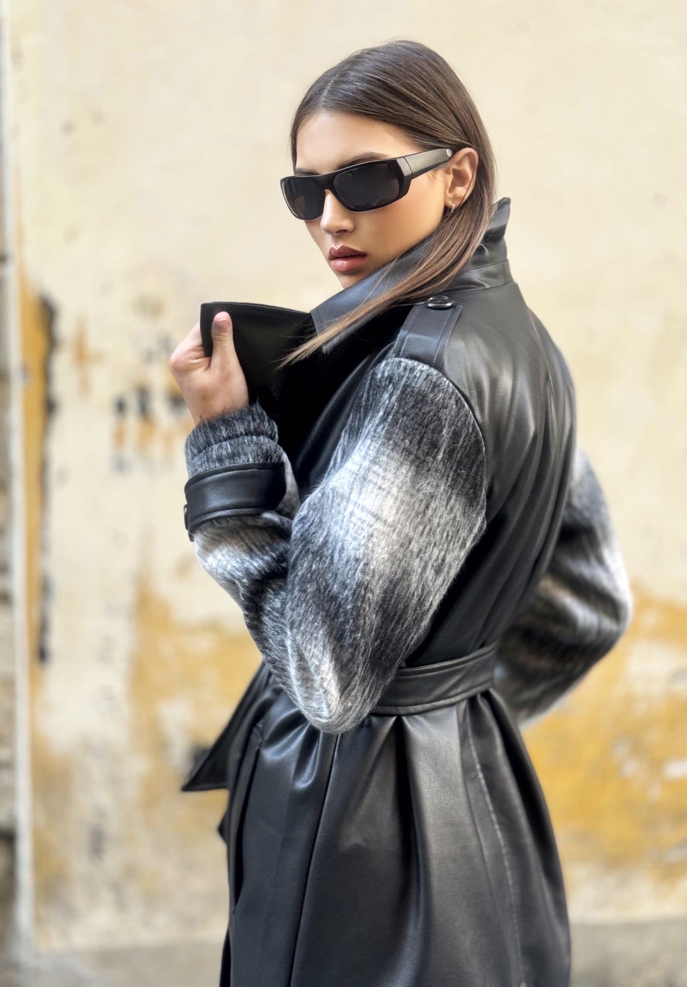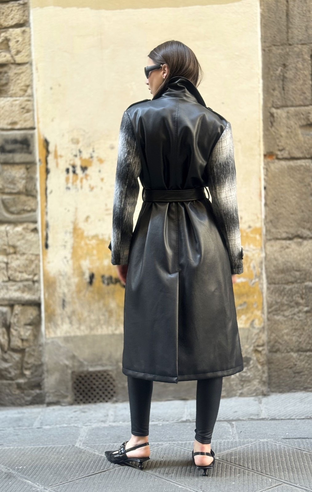 Παλτό δερματίνη. Έχει κανονικό μήκος και κανονική γραμμή. Είναι φοδραρισμένο, onesize και καλύπτει μέχρι και XL. Διαθέτει γούνα στα μανίκια, γιακά, κουμπιά μπροστά για κλείσιμο και δικό του ζωνάκι. Must have επιλογή του χειμώνα που δεν γίνεται να λείπει απο καμία γυναικεία γκαρνταρόμπα.