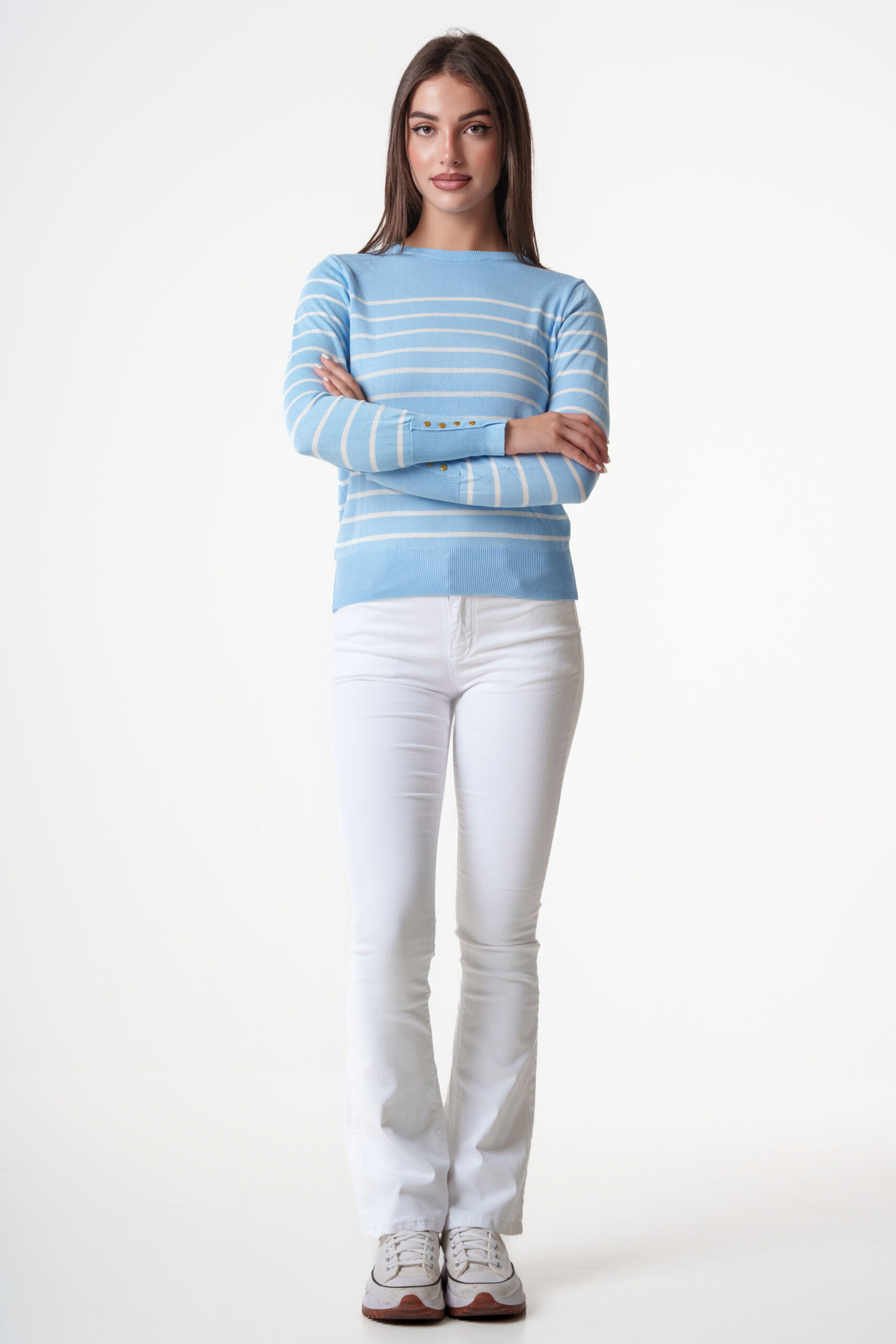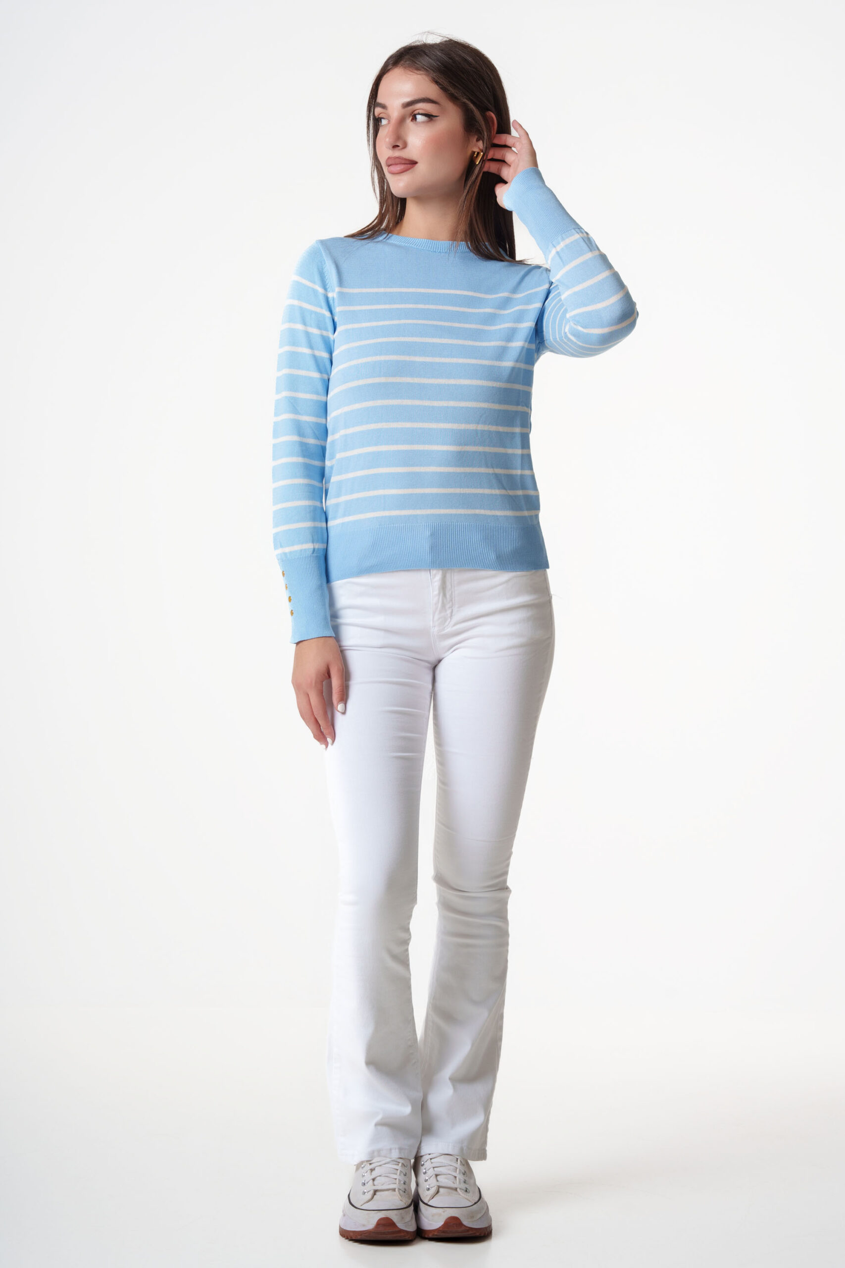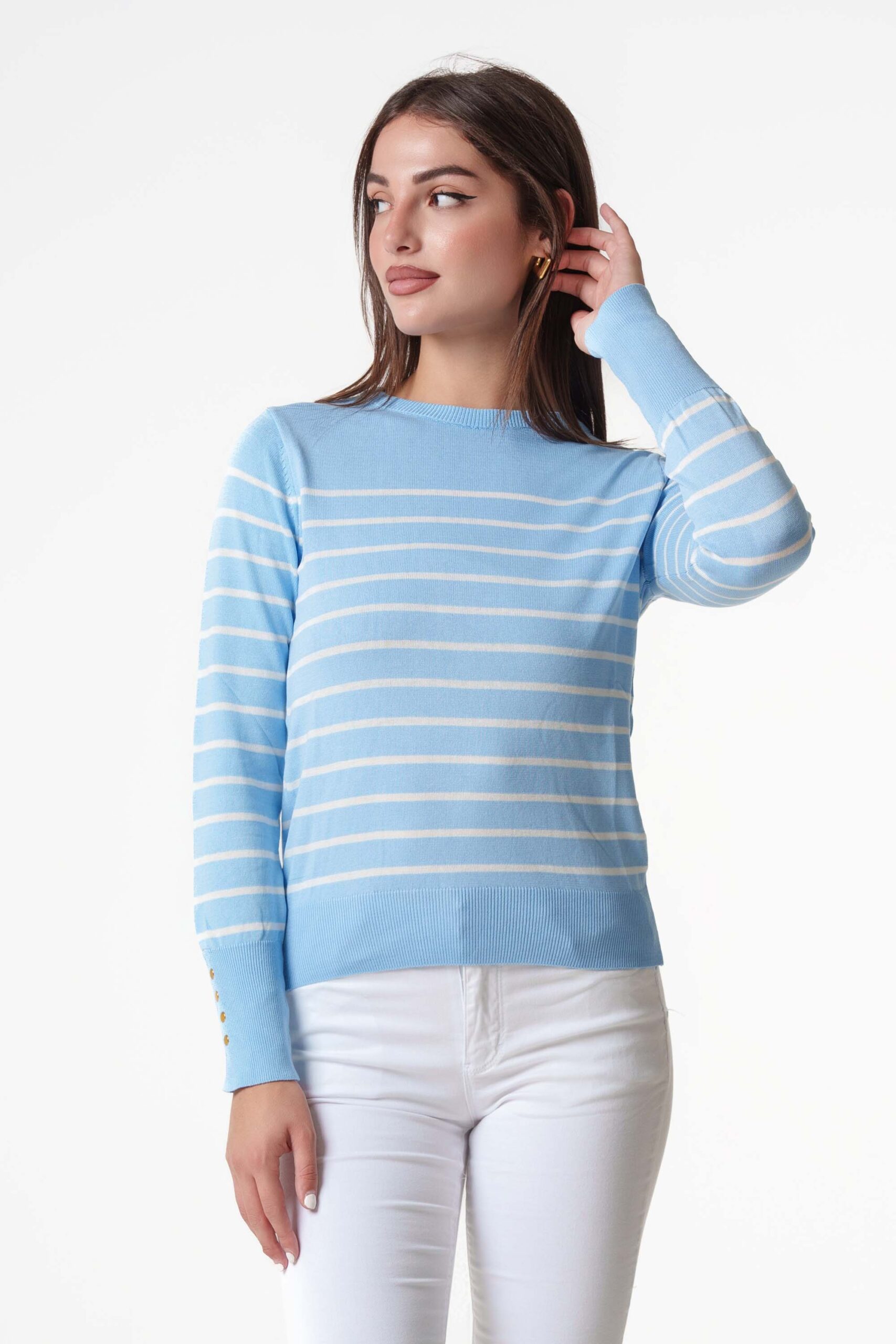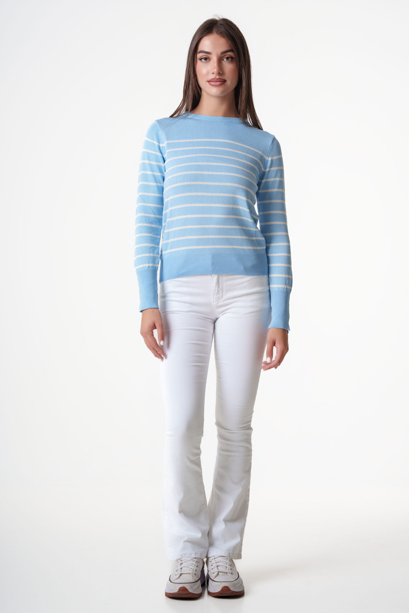Λεπτό πλεκτό με ρίγες. Έχει κανονικό μήκος και κανονική γραμμή. Το ύφασμά του είναι πολυ μαλακό και ελαστικό. Άνεση και στυλ σε κάθε σου εμφάνιση.