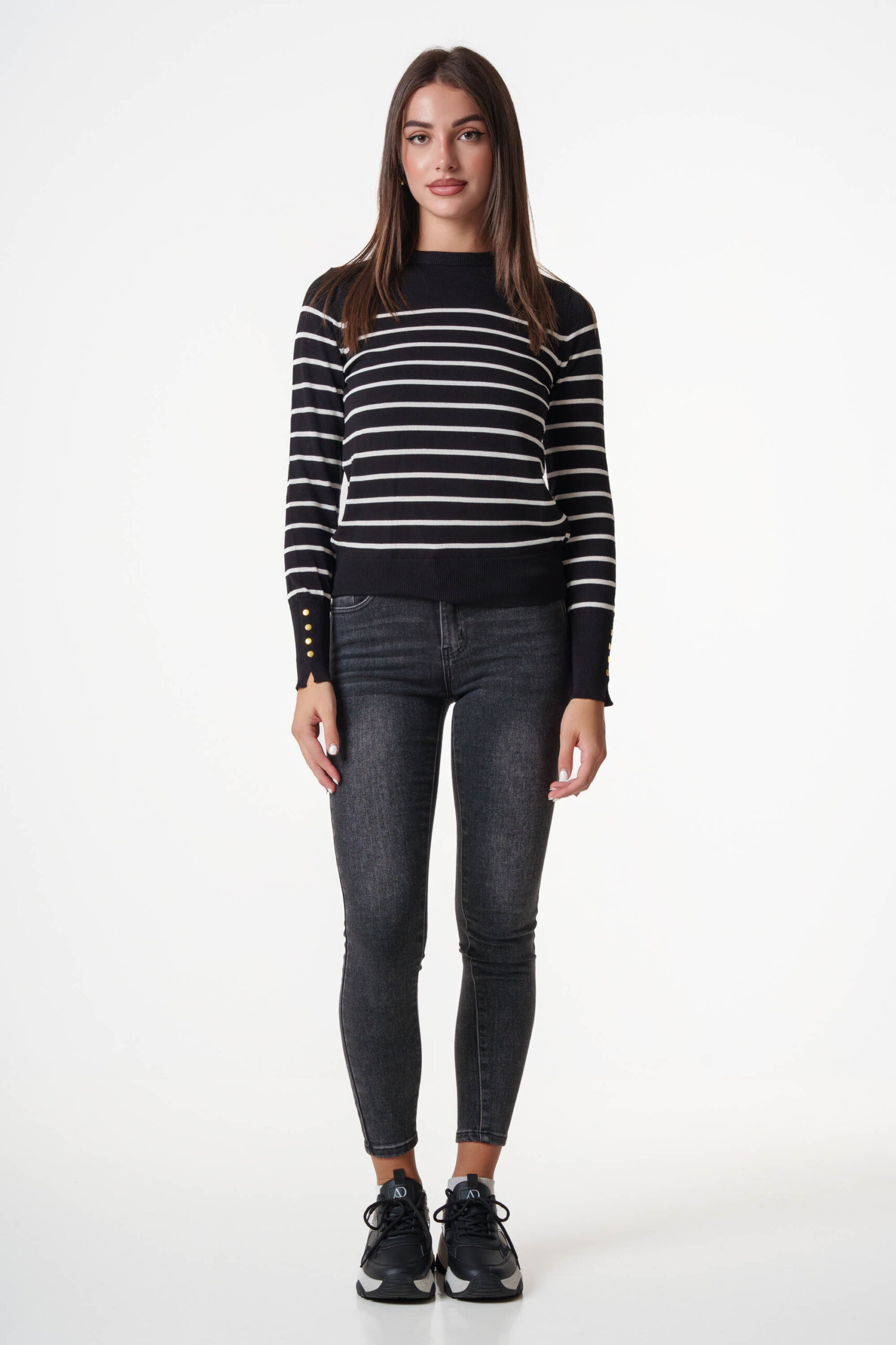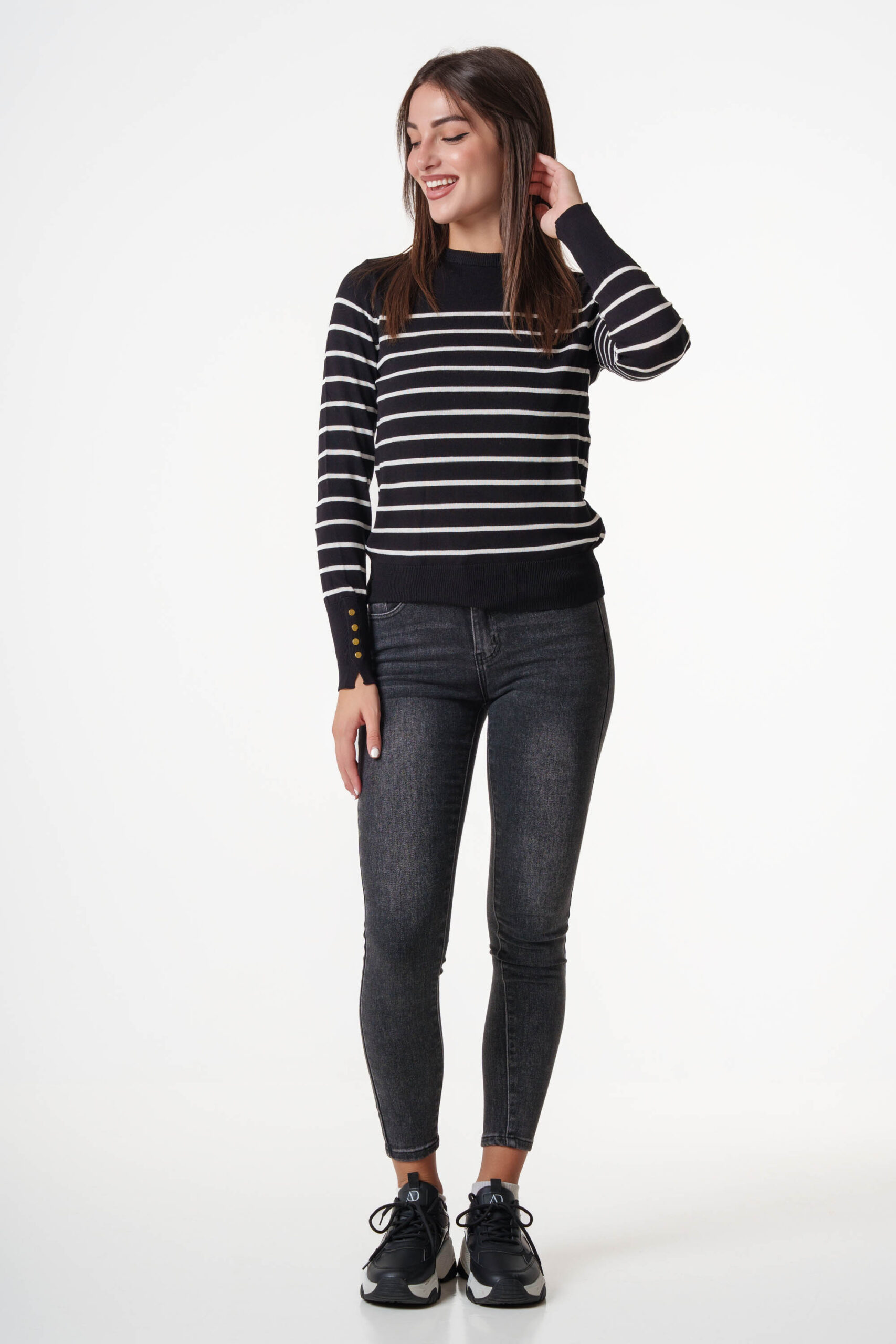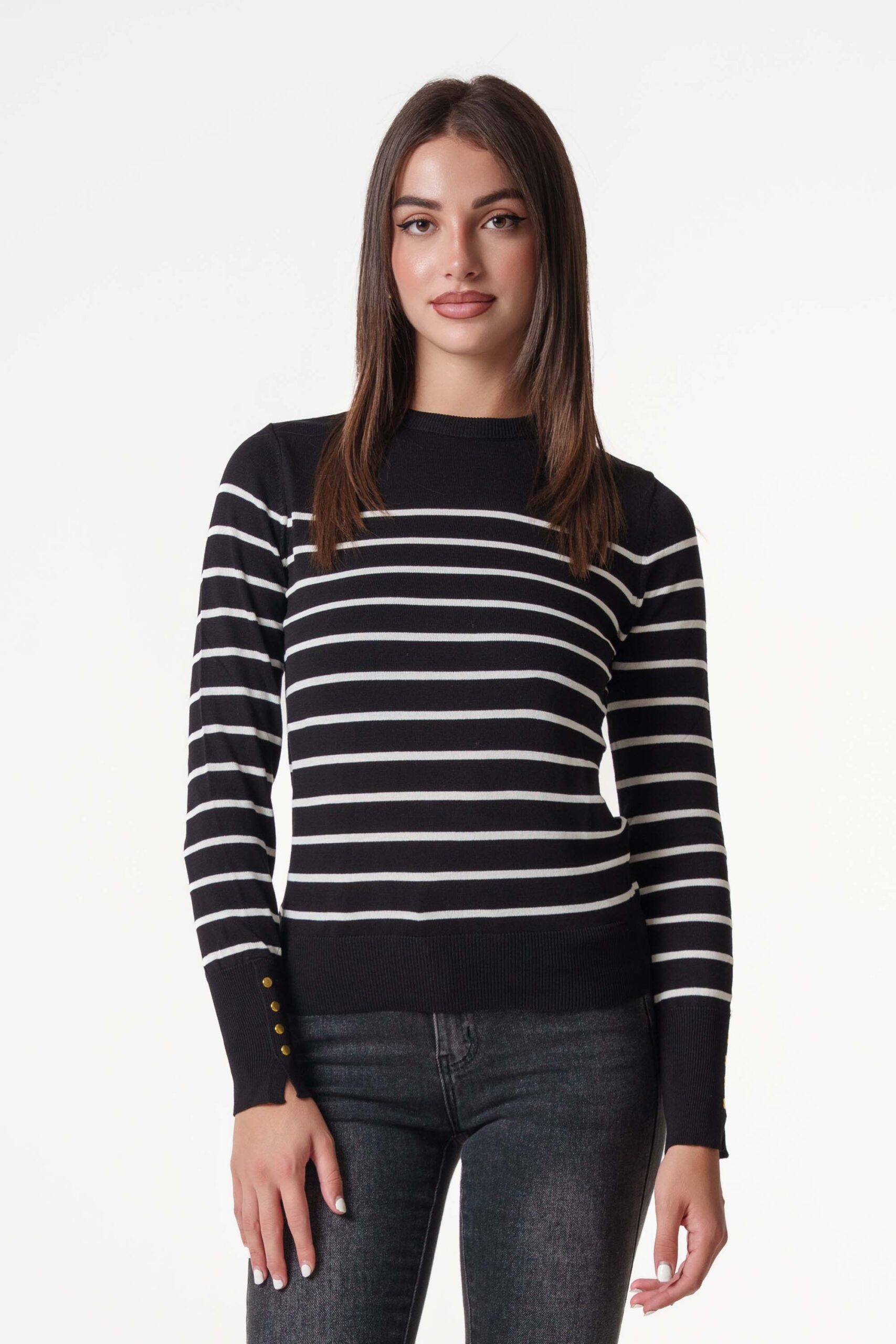 Λεπτό πλεκτό με ρίγες. Έχει κανονικό μήκος και κανονική γραμμή. Το ύφασμά του είναι πολυ μαλακό και ελαστικό. Άνεση και στυλ σε κάθε σου εμφάνιση.